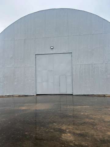 Ангар арочный ( склад, производство ) легко монтируемый размером 48х18, 864 м2 обшит оцинкованным профлистом, с внутри обшит утеплителем тепофол. Проведено отопление система Волкано. высота 9 м. Пол асфальт.