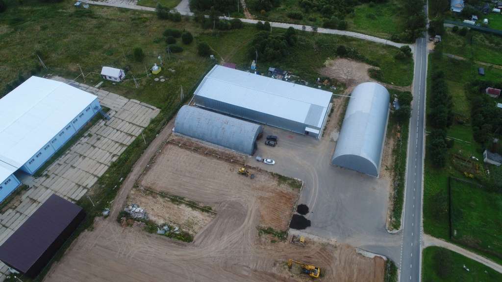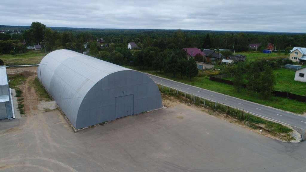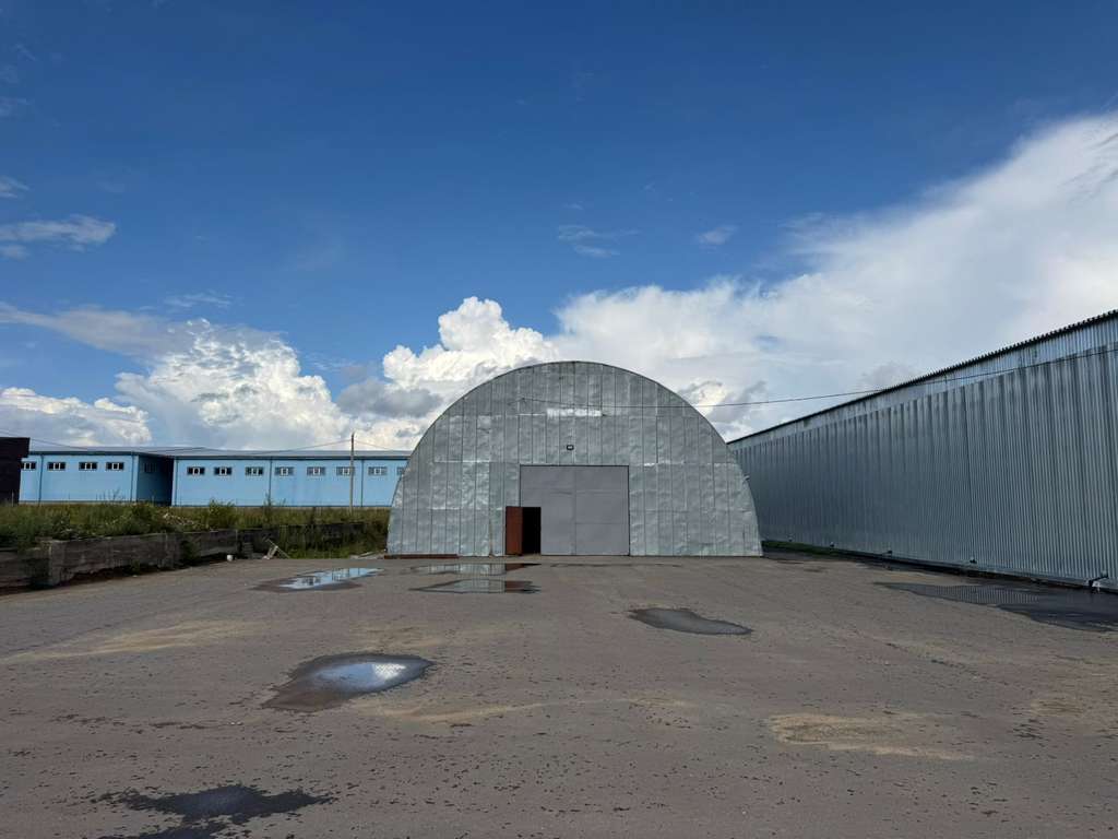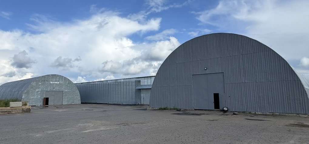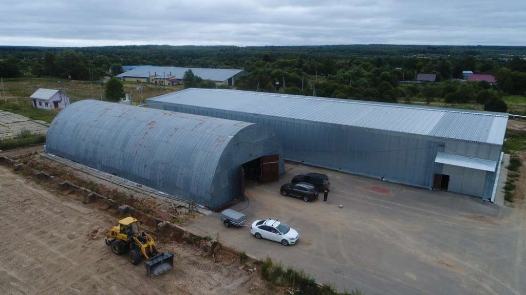 Складские отапливаемые помещения: два ангарных здания общим объемом около 1400 м2, высотой до 9 м.