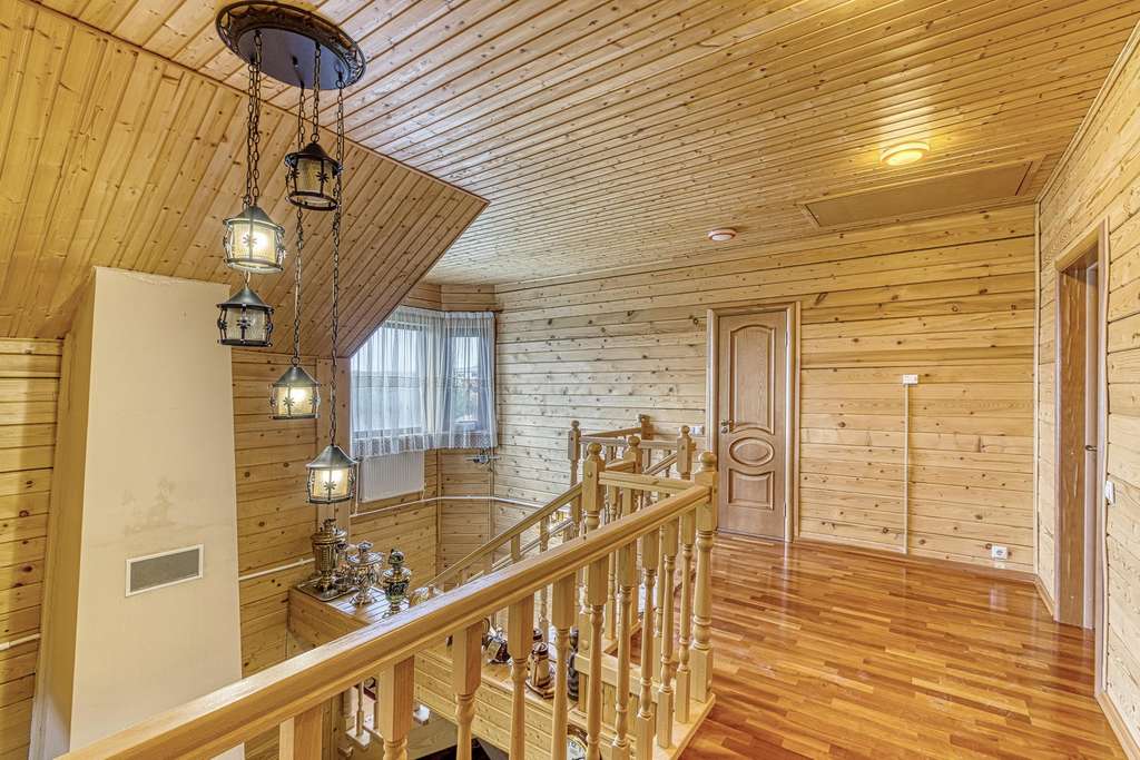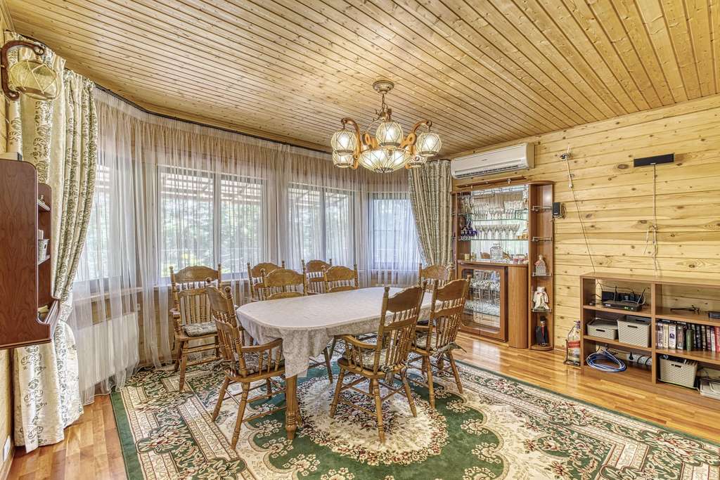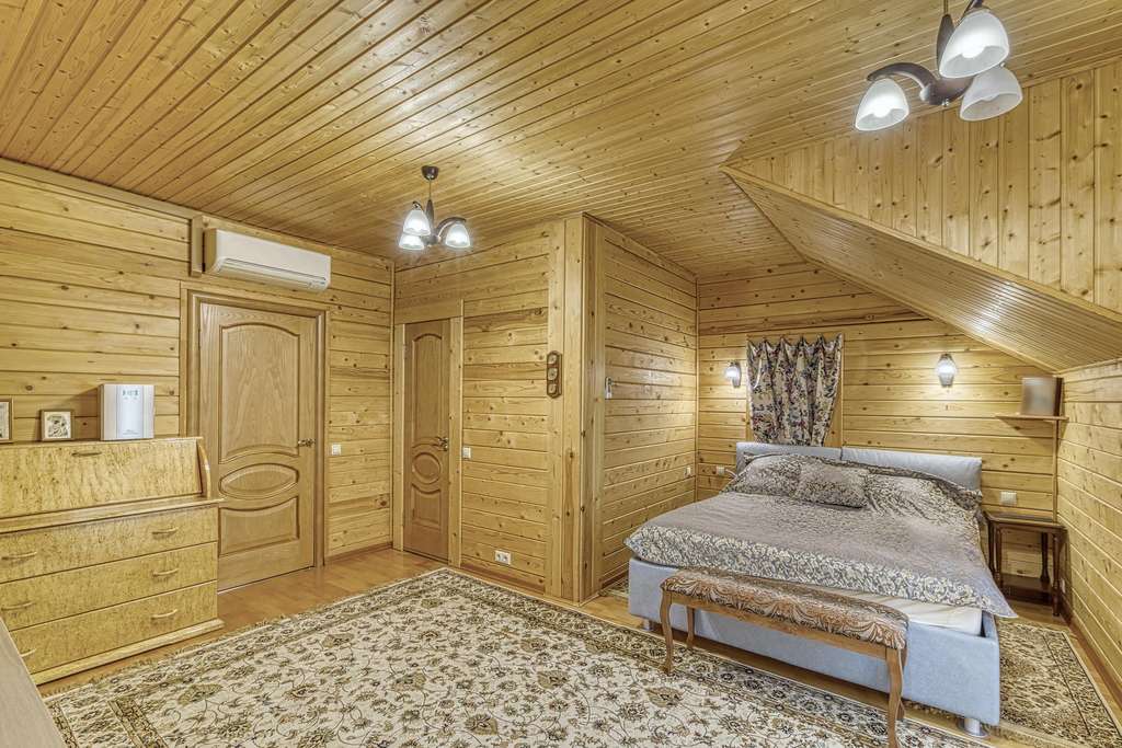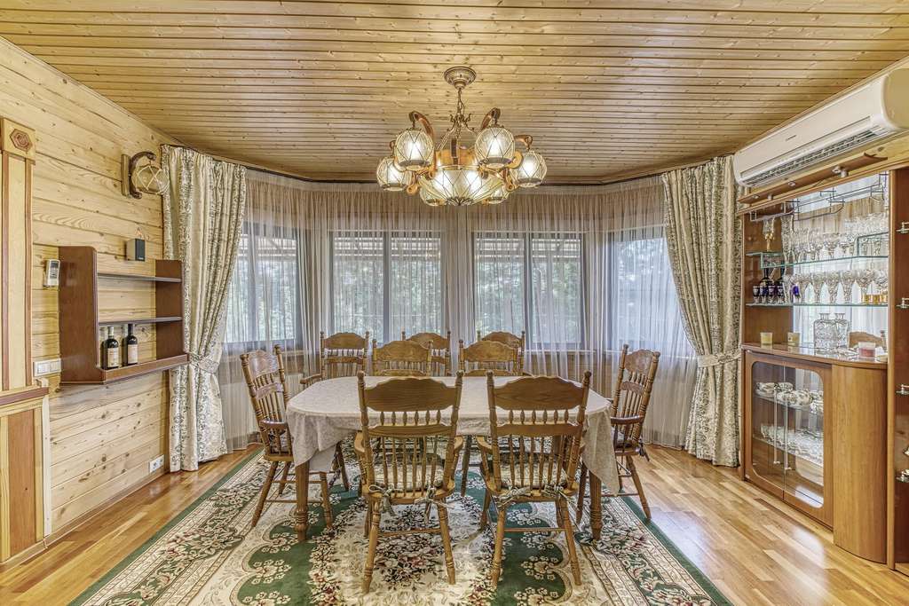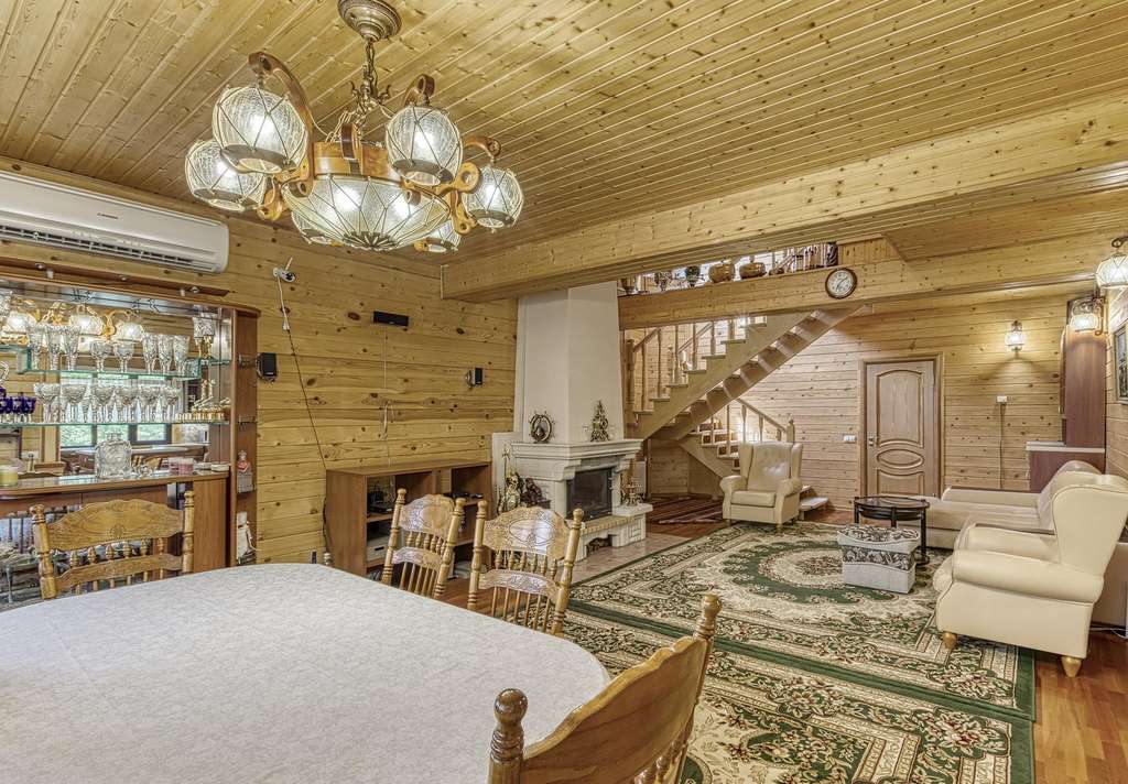Так же в усадьбе есть гостевой дом из круглого бревна. Дом с четырьмя спальнями на 2 втором этаже и балконом, с видом на пруд. На первом этаже расположена зон отдыха с русским бильярдом, баней (печь дровяная) , и купелью. Так же в доме оборудована своя кухня. Выход из гостевого дома прям к пруду. Пруд с рыбой (карпы и толстолобики) .