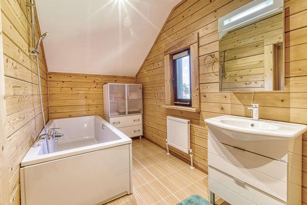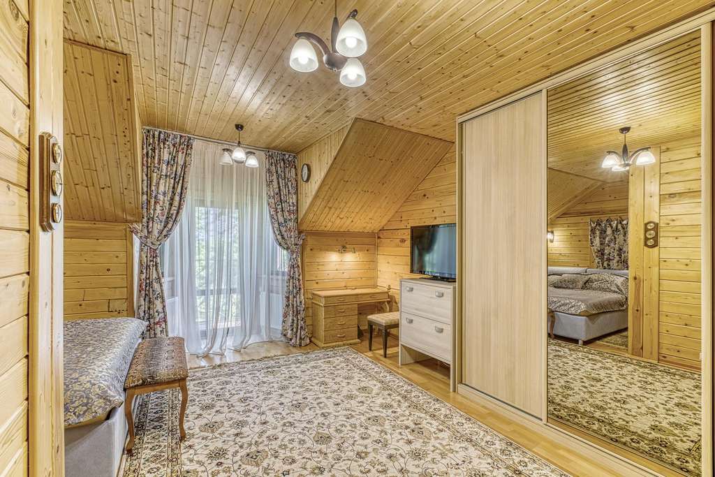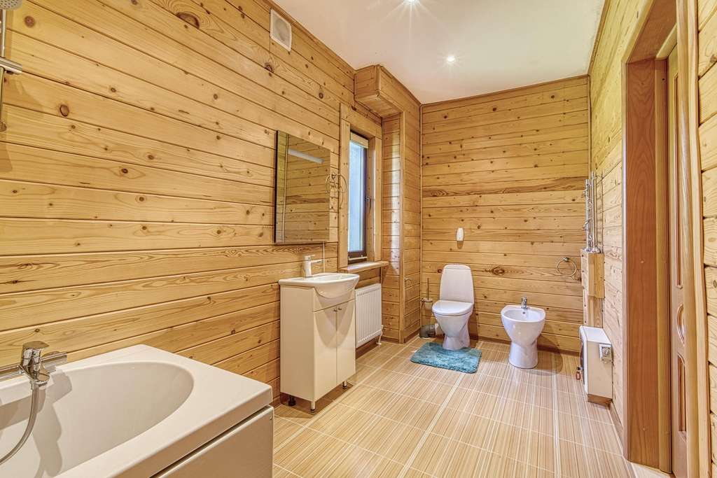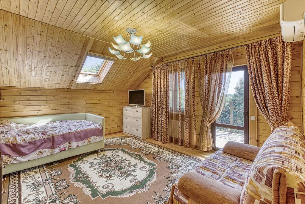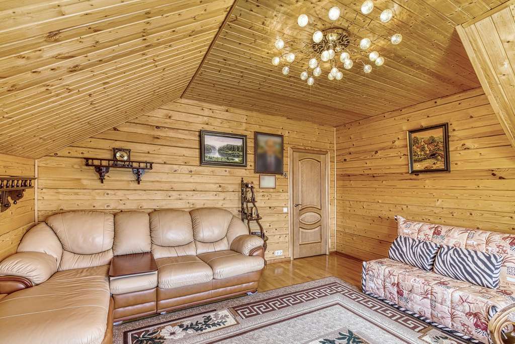 Так же в усадьбе есть гостевой дом из круглого бревна. Дом с четырьмя спальнями на 2 втором этаже и балконом, с видом на пруд. На первом этаже расположена зон отдыха с русским бильярдом, баней (печь дровяная) , и купелью. Так же в доме оборудована своя кухня. Выход из гостевого дома прям к пруду. Пруд с рыбой (карпы и толстолобики) .